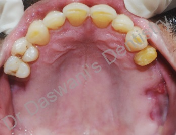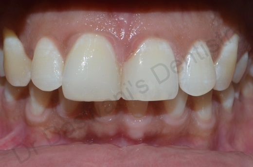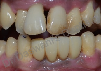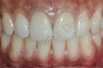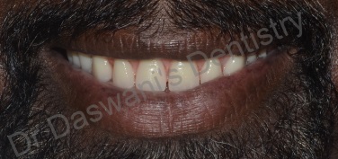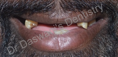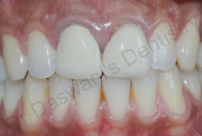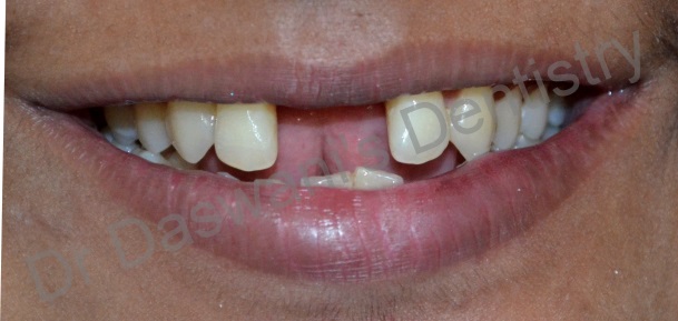 SMILE DESIGNING done to replace missing upper front teeth, mimiking nature with slight overlap of teeth using metal free Zirconia bridge.