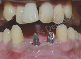 IMPLANTS used to replace lower front teeth with implant supported zirconia bridge.
